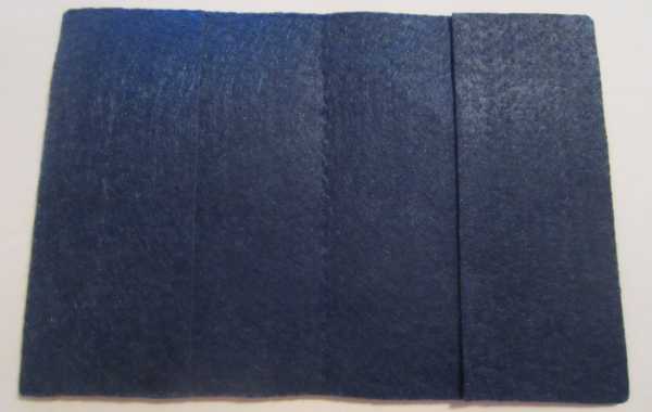 Теперь можно готовое полотно разделить на 2 части. Фетр достаточно плотный и при сгибе в готовом изделии будет выпрямляться, чего нам совершенно не нужно.