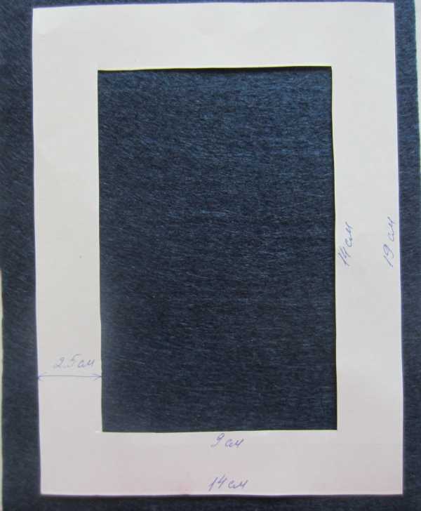 Делаем основу фоторамки по шаблону (размеры внешней рамки 19×14 см, внутренней — 9×14 см, ширина рамки — 2,5 см) и основа под фоторамку — прямоугольник с длиной 19 см и шириной 14 см.