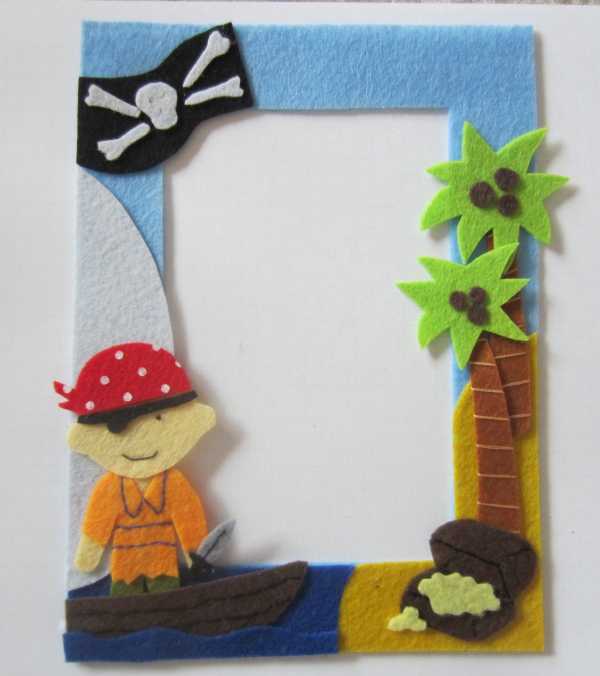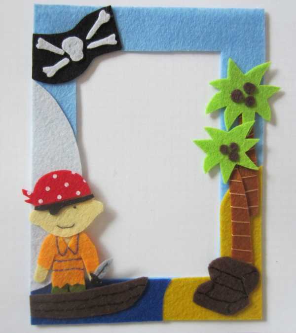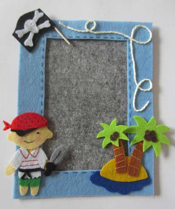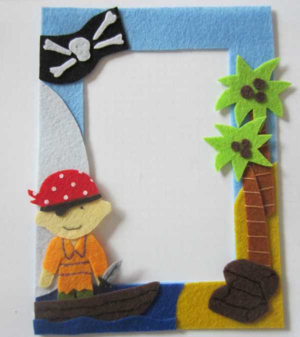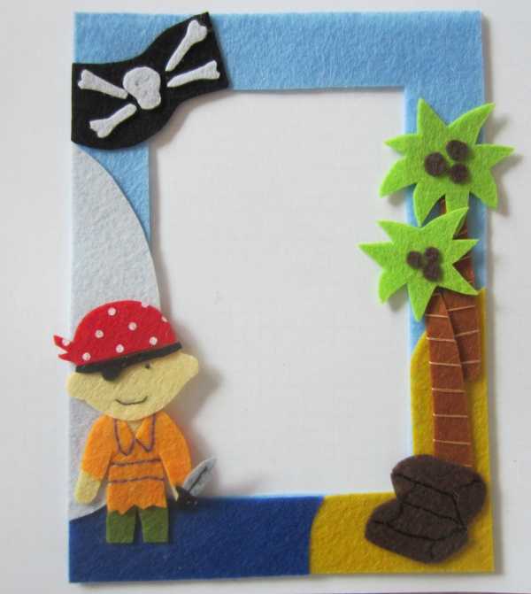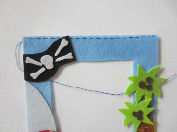 На фоторамке пират плывет на корабле, поэтому его основание мы клеим поверх ног человечка.