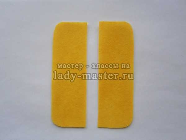 3. Две дополнительные детали тоже нужно вырезать из желтого фетра с припусками для швов.