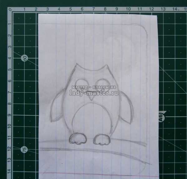 На фотографии показан эскиз рисунка совушки. Перерисуйте его либо же распечатайте шаблон на принтере с Интернета.