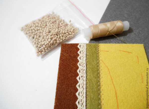 Теперь приступаем к соединению деталей. Будем обметывать стороны с использованием деревянных бусин диаметром 4 мм.
