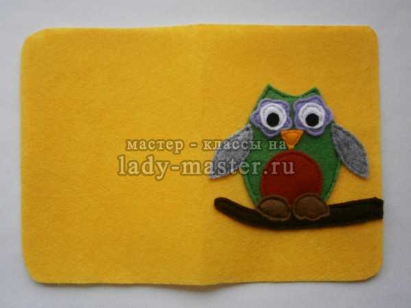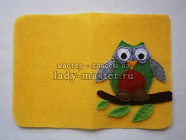 Из фетра можно шить не только игрушки, а вполне практичные вещи. Например, обложку для паспорта, блокнота или книги. Такая обложка получается удобной и декоративной. Ее легко украсить аппликацией из цветных кусочков фетра. Аппликация может быть любой – цветы, пейзаж, орнамент. Я предлагаю украсить обложку изображением совы, сидящей на ветке.