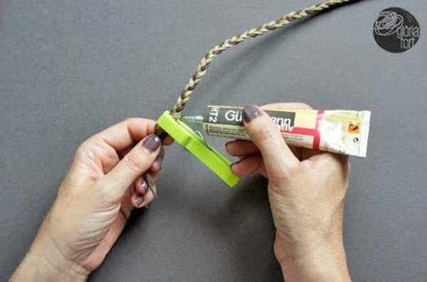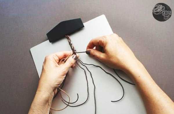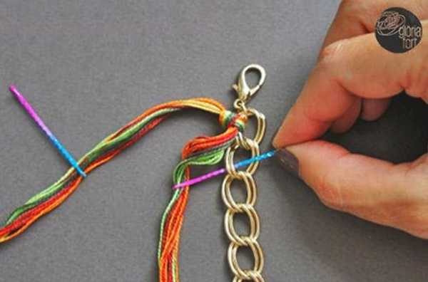При создании браслета воспользуйтесь невидимками, чтобы вплетать несколько нитей одновременно.