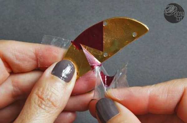 Лак для ногтей и скотч помогут вам создать любой геометрический узор на металлических деталях украшения.