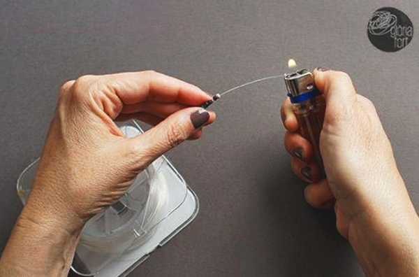 Чтобы закрепить леску в конце работы, опалите один конец зажигалкой. Если вам не нравится, что в результате этого получается неаккуратный почерневший шарик, то тогда обжигайте нить в синем пламени с самой низкой температурой.