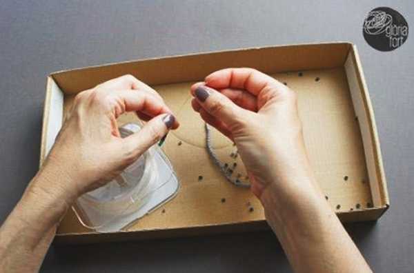 При работе с мелкими деталями (бисером, бусинами) не забывайте использовать обычную коробку. Если вы вдруг рассыплете пакетик с материалом, вам не придется потом собирать маленькие детали по всему дому.