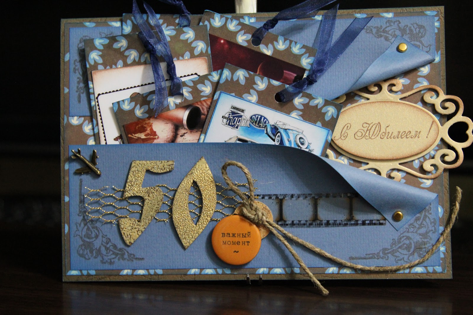 Еще одной неплохой идеей подарка для близкого человека является самодельный фотоальбом, в котором каждый разворот символизирует определенный этап жизни именинника. Если вы не владеете столь личной информацией, можно сделать альбом и поздравление мужчине с юбилеем в виде открытки с надписью: «Один день на рыбалке/охоте/даче (на выбор)».