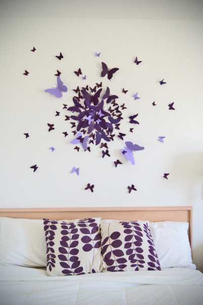 Чтобы украсить свой дом, не обязательно долгими часами гоняться по полю с сачком за бабочками. Пусть эти свободолюбивые создания порхают на воле. Проще сделать бабочку своими руками. Выстроенные в виде геометрической фигуры или просто хаотично разбросанные по стене бабочки ярких оттенков смогут добавить интерьеру вашего жилища свежести и легкости. Вариантов для такой затеи превеликое множество.