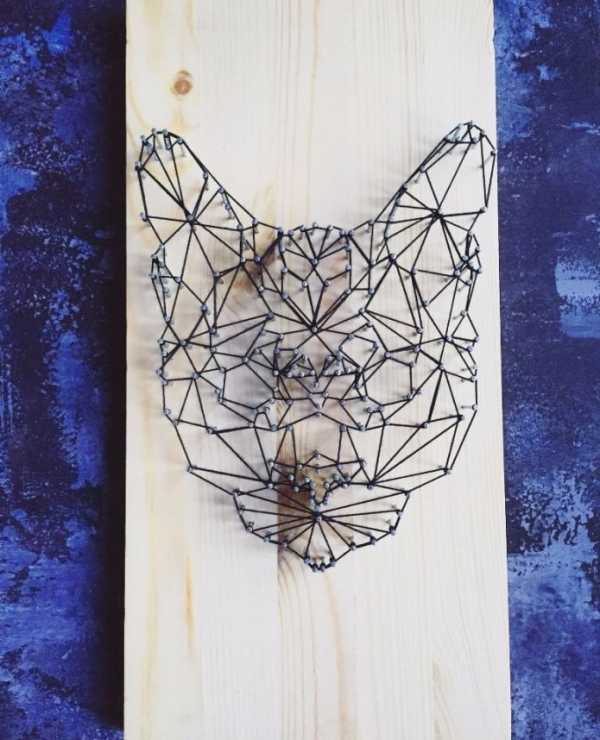 С помощью техники стринг-арт, которая предполагает создание композиций с использованием ниток и гвоздей, можно добиться уникального и неординарного оформления стен, формирующего нескучный и нетривиальный дизайн.