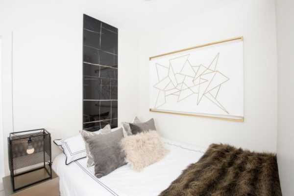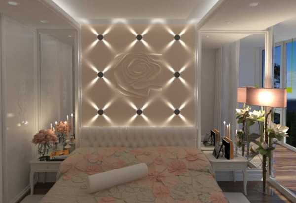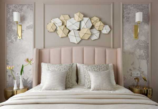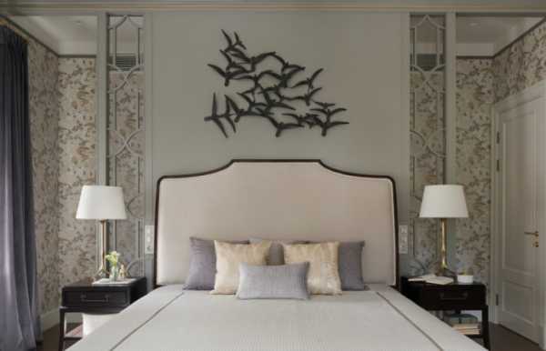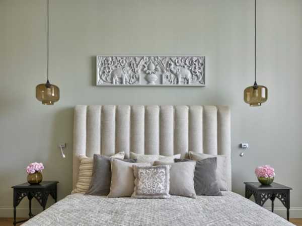 На фото небольшое прямоугольное панно из гипса, расположенное над кроватью в спальне.