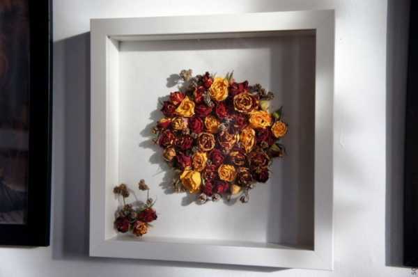 - Панно из ткани: подложку обтянуть рамкой, сверху произвольно наклеить отрезки различных тканей, далее прикрепить цветы (искусственные или сухоцветы). Затем вскрыть все это великолепие лаком (лучше прозрачным).