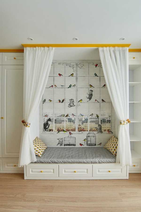 На фото детская комната с фигурным декоративным панно из дерева на стене.