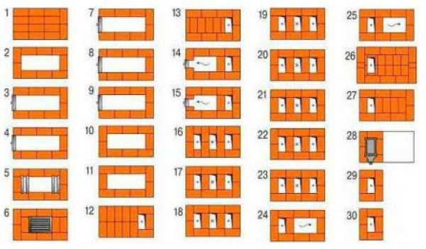 Порядовка печей зависит от типа движения воздуха внутри, ее назначения в помещении. Если вы сомневаетесь в своих силах — вначале сложите ряды без раствора, на сухую, чтобы не переделывать неудачный вариант.