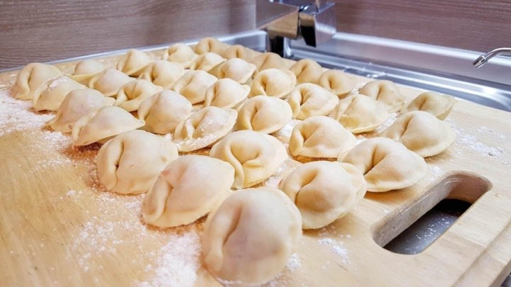 Хочу отметить, что из данного количества получается небольшое количество мучных изделий. На выходе у меня вышло 40 «богатырских» пельменей, диаметр заготовок которых был 7,5 см. Я рекомендую готовить сразу 2 порции теста.