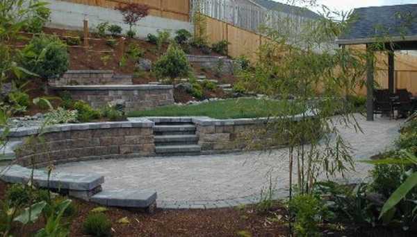Проектируйте конфигурацию дорожек с небольшим расширением в начале и конце. Это зрительно расширяет границы участка.