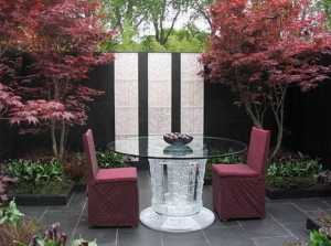 Самый вдумчивый и оригинальный стиль ландшафтного дизайна. Предназначение такого уголка на территории своего сада — неспешные чайные церемонии, философские рассуждения о жизни и прогулки. В оформлении используется концепция сочетания пяти главнейших, по мнению японцев, элементов жизни: одного духовного и четырех материальных. То есть: