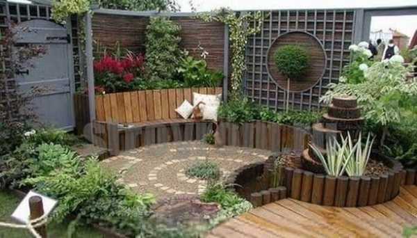 Задействуйте углы участка — это красиво и практично, к тому же, позволяет визуально увеличить участок. Этот метод также известен как «метод кошек», т.к. действует по принципу: «в каждом углу по кошке, напротив каждой кошки — по три кошки». Метод великолепно работает на любых малых объемах, высвобождая максимальное количество пространства.