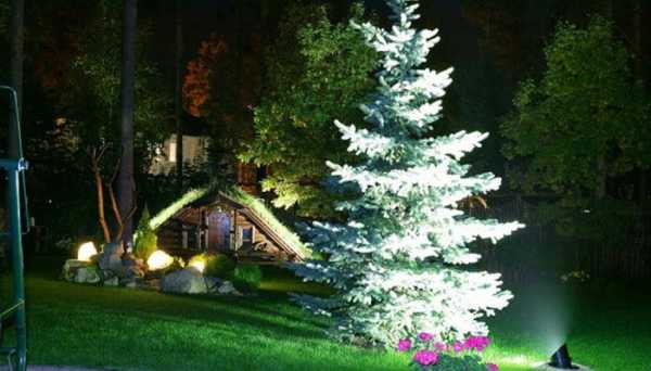 Если вы хотите выделить не только уголок ландшафта, но и его конкретные детали, используйте не слишком яркий прожектор и точечную подсветку совместно.