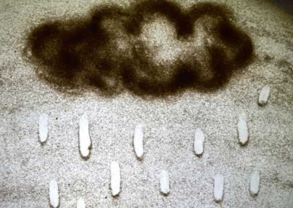 Песок зажат в кулаке. Делаем круговые движения рукой с маленькой амплитудой, рассыпаем материал по песочнице. Мелкие линии можно потом провести ногтем, чтобы облака получились пышные.