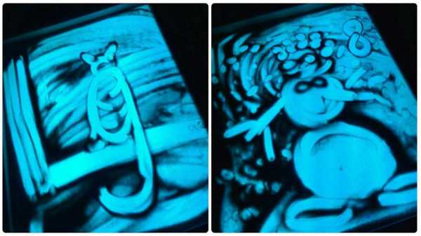 - Рисовать песком на стекле весело и интересно. 99% детей получают заряд положительных эмоций во время урока, развлечения.
