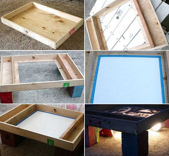 - Столик с подсветкой и бортами, чтобы материал не просыпался на пол.