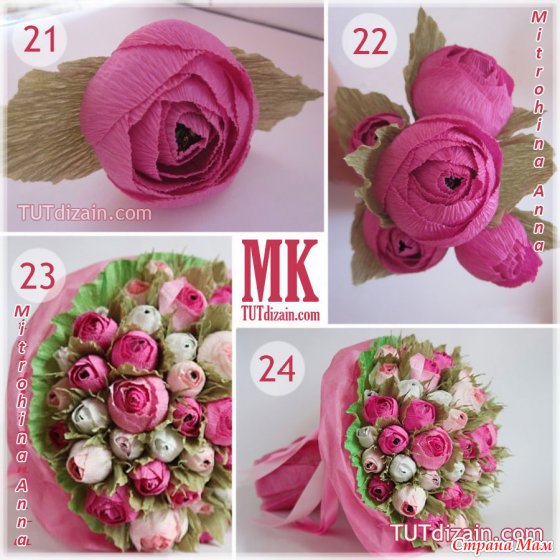 изготовление розы из гофрированной бумаги, данная техника очень проста в