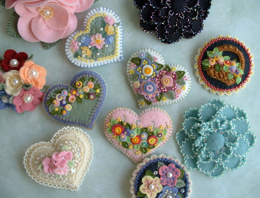 - Бижутерия. Из фетра часто изготавливают заколки, брошки, браслеты и бусы.