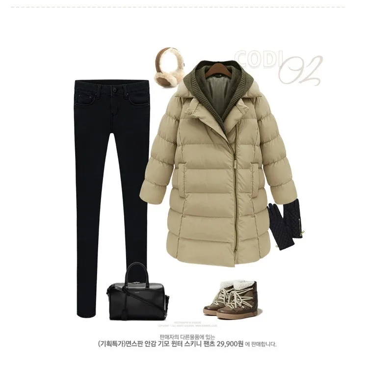 Считается, что пуховики эффектнее всего выглядят с брюками и джинсами. Бежевый пуховик чуть ниже колена, узкие джинсы, сапоги с массивный каблуком — такое сочетание будет достаточно эффектным, если выбрать брюки и сапоги темного оттенка.Не стоит подбирать брюки или юбки, повторяющие цвет верхней одежды, в противном случае девушка может выглядеть в таком образе нелепо.