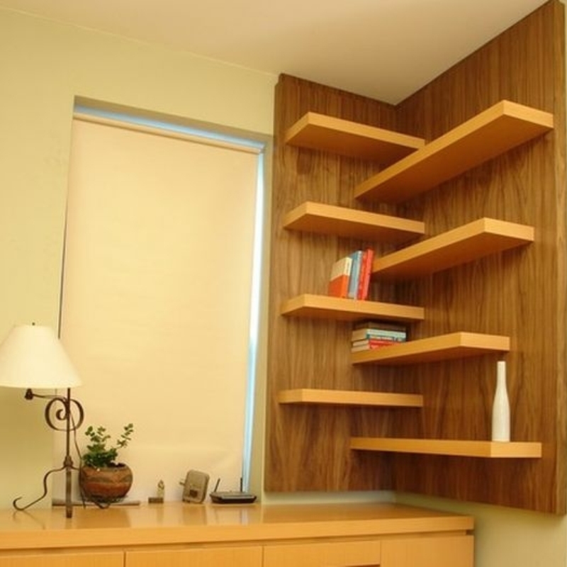 Еще одна идеальная схема для угловых полок с использованием деревянных реек или полос МДФ! Таким образом, угловые полки были бы потрясающими для современной гостиной! Вам нужно получить 2 разных набора деревянных отрезков, один набор для вертикальных опор, в которых должны быть прорези через равные промежутки! 2-й комплект — это полки, которые подойдут к ровным разрезам! Полное руководство и самоучитель здесь.