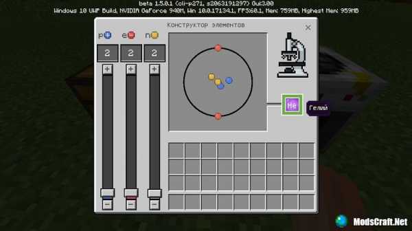 Так что есть два способа получения гелия — взять из инвентаря в творческом режиме или же создать его с помощью конструктора элементов:
