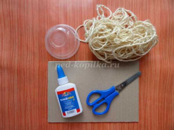 - веревка, клей ПВХ, баллончик с золотой краской.