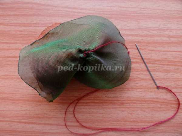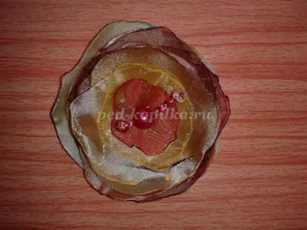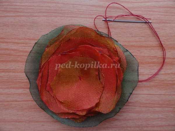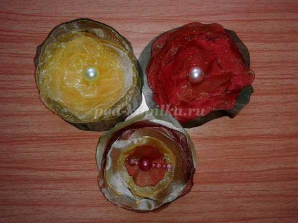 Формируем цветы, сшиваем, украшаем с помощью бусин.
