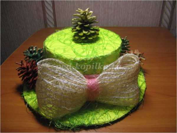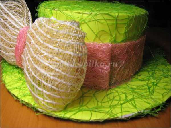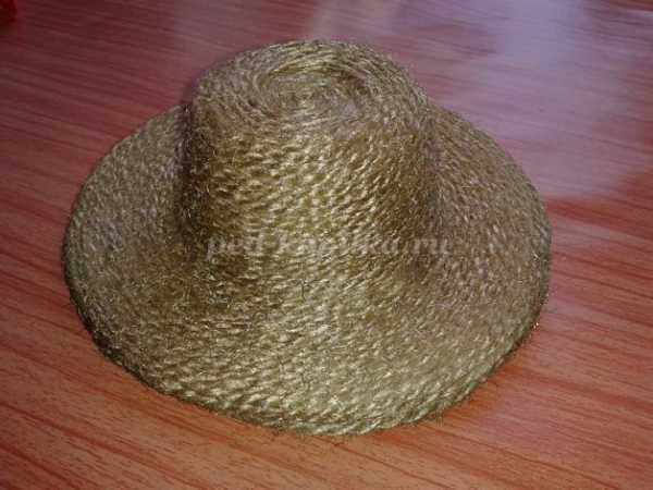 Покрываем шляпу золотой краской, добавляем последние штрихи с помощью сизали.