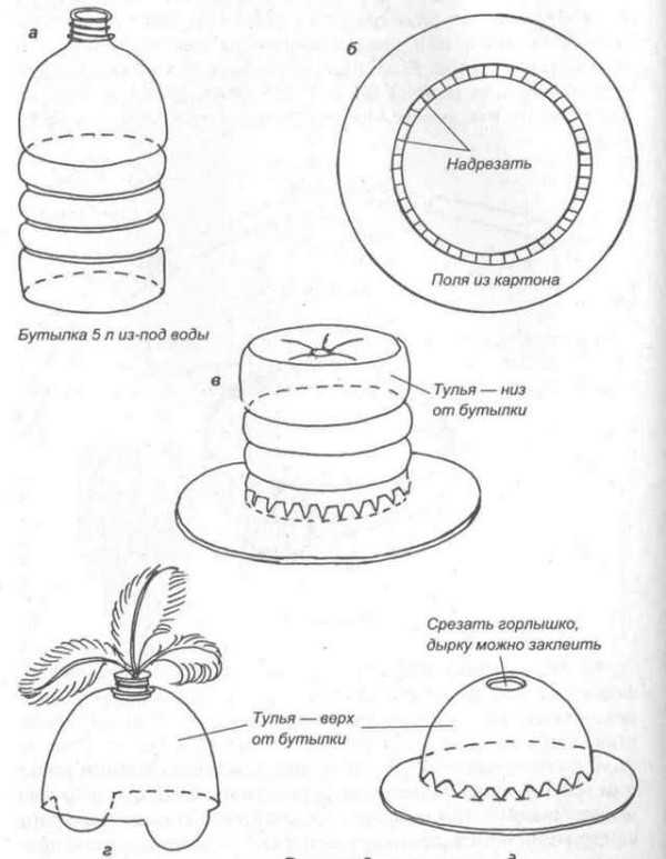 Перед вами схема создания уникальных шляпок из пластиковых бутылей. Оригинальный и экономичный вариант. Останется только украсить поделку в соответствие с осенней тематикой на ваше усмотрение и вкус.