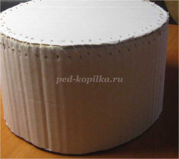 Убираем лишнюю плащевую, равномерно ее разрезая на полоски. Вырежьте и, не доходя до края картона, даёте ткани равномерно распределиться, главное – за край не выходить, с внешней стороны это все видно.