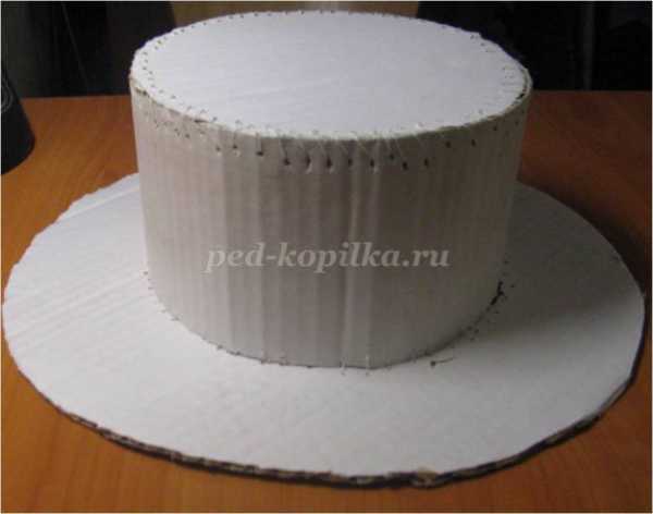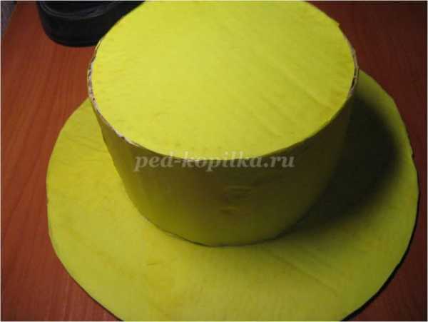 - Обклеиваем получившуюся картонную шляпу цветной бумагой.