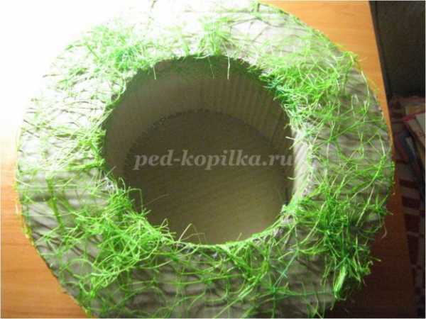 - Украшаем с помощью упаковочного материала, как показано на фото.