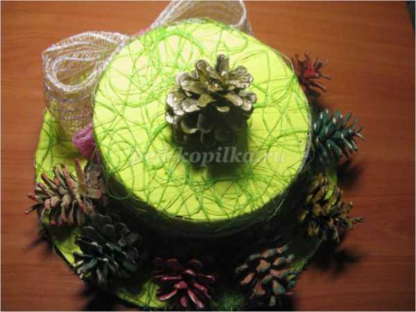 - Последние штрихи. Раскрашиваем шишки и добавляем их на получившийся головной убор.