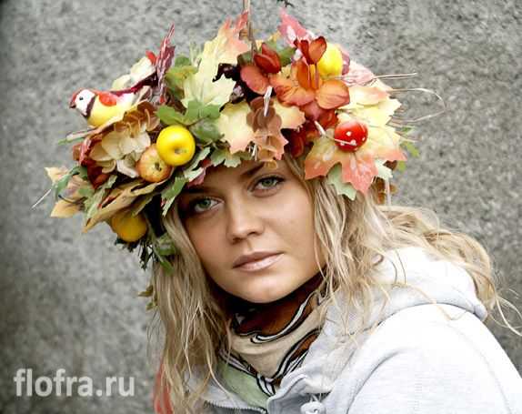 Осенние праздники, на них обязательно приходит сама Красавица Осень. Для неё я предлагаю сделать необычный головной убор. Вроде бы простая шляпа, да только из листьев, она очень подходит для Осени. Шляпа сделана из кленовых листьев только собранных и не высушеных. Для работы нужны инструменты: шило и секатор (или ножницы). Все листья крепятся друг за друга при помощи самого стебелька от листочка, никакого клея и скрепляющих инструментов не требуется