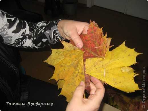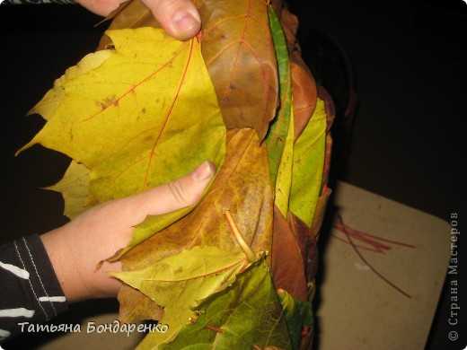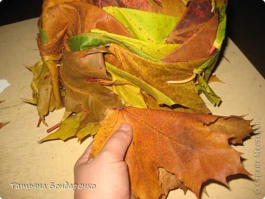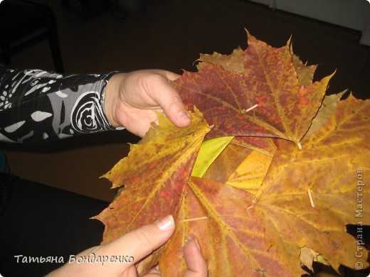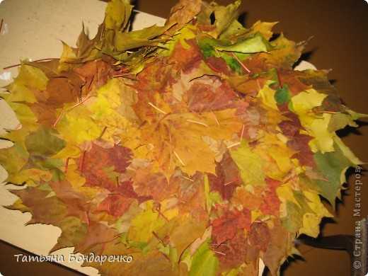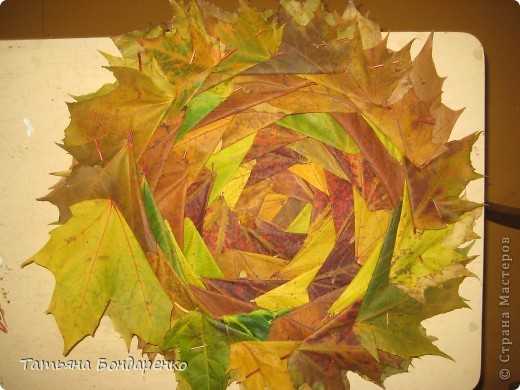 Вот уже образовался кружок, но мы продолжаем накладывать листья дальше