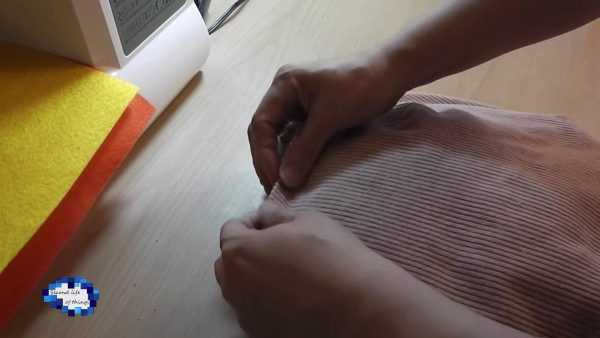 Соединяем плащевку с вельветом. Не было возможности аккуратно сидеть пришивать, решила приклеить пистолетом. Следите за равномерным распределением ткани, чтобы избежать проблем.