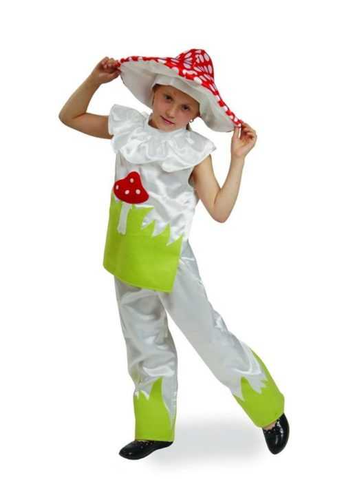 В костюме гриба центральная часть – шляпа, на нее и нужно основное старание. Если же нет времени на кропотливую сложную работу, то ускорьте процесс, используя ватман, его легко свернуть в фигуру конуса, а для покраски много времени не понадобится.