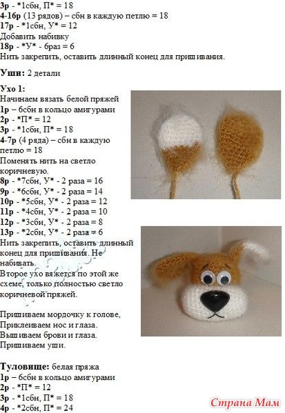 Руководство по вязанию спицами игрушки Щенок Пудди Размер готовой игрушки 15 см.