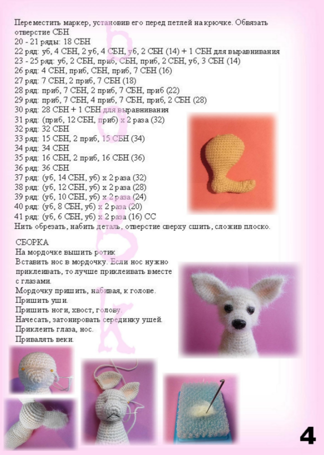 Я чувствую ее боль! Все (?) узоры собак в этой книге используют этот стежок в конце формирования укороченных рядов в секциях головы. Это помогает закрыть отверстия, созданные укороченными рядами, поэтому набивка не просвечивает. В свое время я делала много укороченных рядов, в основном носочными и пяточными рядами, но эта пулевая вязка была для меня в новинку.