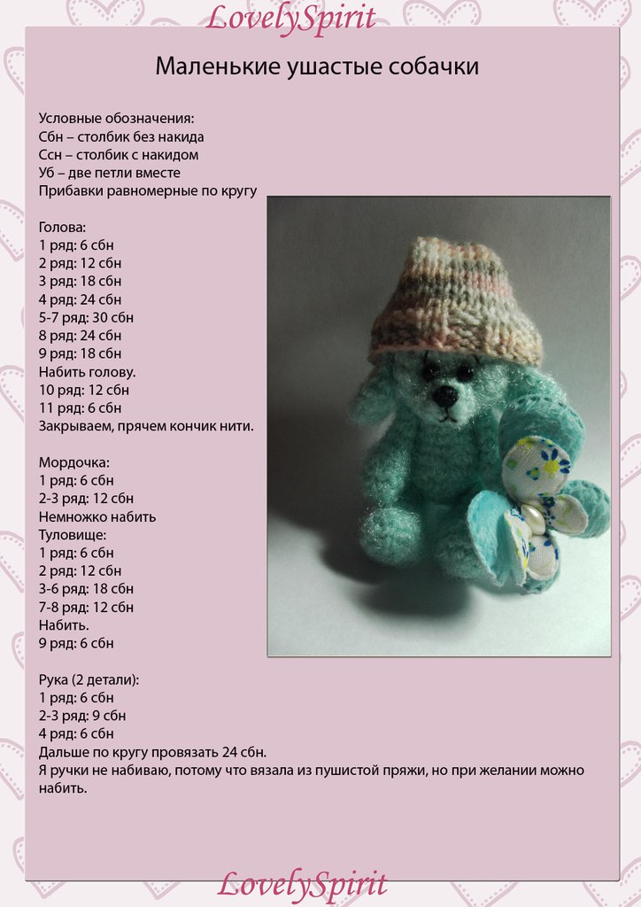 Животные спицамиВязаный спицами щенок Малыш Вилли. Описание Высота игрушки — 12 см (с ушками)