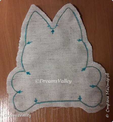 Шаг 4. Прострачиваем на машинке или прошиваем вручную по контуру. Оставляем не зашитым место между ушами для набивки (это место отмечено рисками на фото).