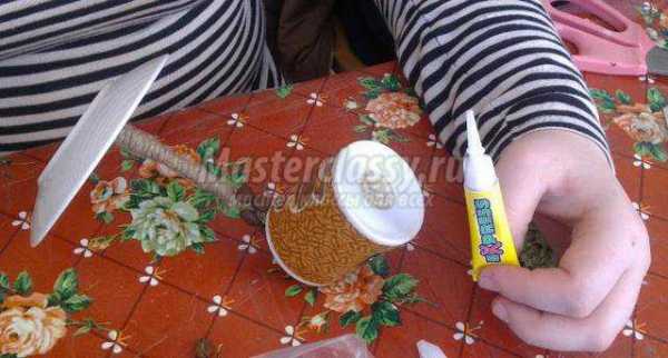 Теперь пришло время для приготовления кофейной грунтовки. Для этого в небольшую ёмкость высыпаем кофе из пакетика, добавляем 6 столовых ложек тёплой воды, хорошо размешиваем. Затем добавляем 5 ложек клея ПВА, и опять размешиваем до однородной массы. По желанию можно в эту смесь добавить порошок ванилина и корицы.