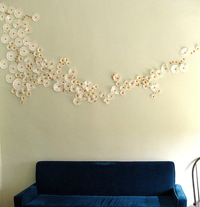 Оригинальным украшением для стен могут стать и декоративные потолочные медальоны из полиуретана. Их легко перекрасить в любой цвет, чтобы органично вписать в интерьер. Подберите розетки разных размеров и фасонов, такая объемная композиция станет изюминкой любого помещения: кухни, спальни, гостиной.