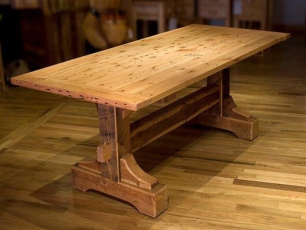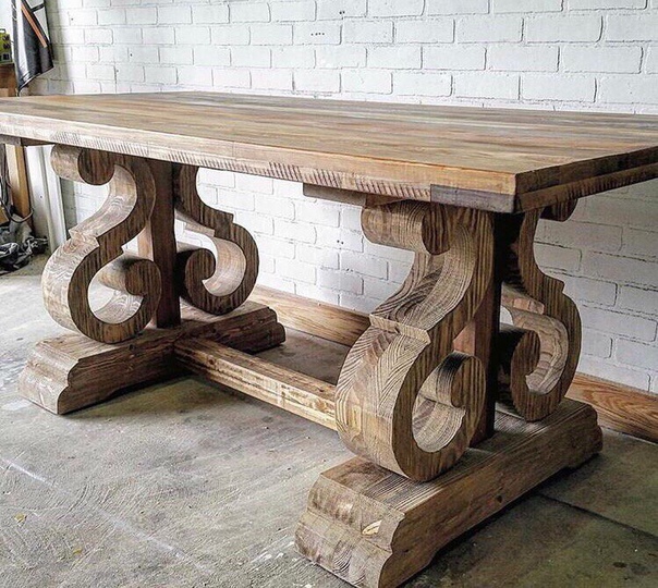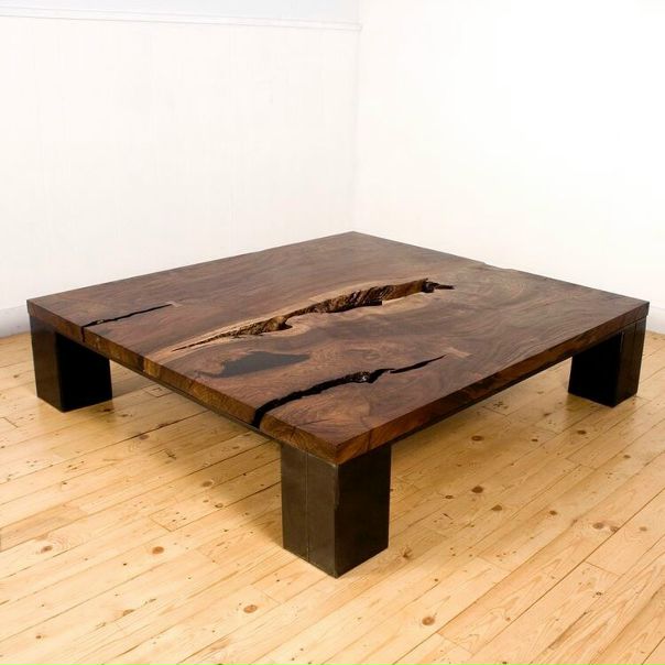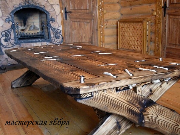 Нельзя перегружать конструкцию стола слишком тяжелыми элементами. Попробуйте подыскать подходящее основание из природного камня. Дизайн деревянного верха подскажет сам камень. Поставьте на него массивную деревянную поверхность и вы получите стол, которого нет ни у кого.Красивые примеры и варианты